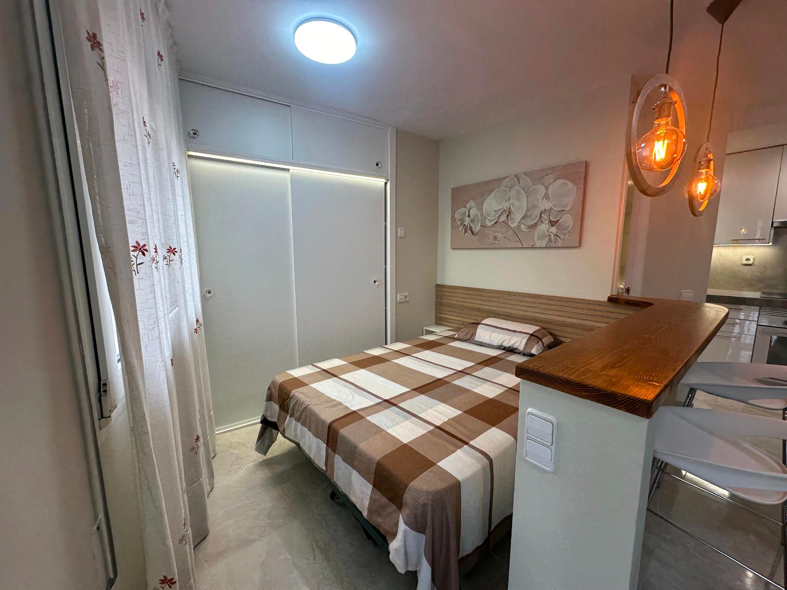 El inmueble cuenta con una cocina completamente equipada, un confortable salón y una acogedora zona de dormitorio, complementado con una práctica galería-lavadero que aporta un espacio adicional de gran utilidad. Todo el estudio ha sido renovado con un enfoque moderno y funcional, incorporando aire acondicionado para garantizar confort durante todo el año.